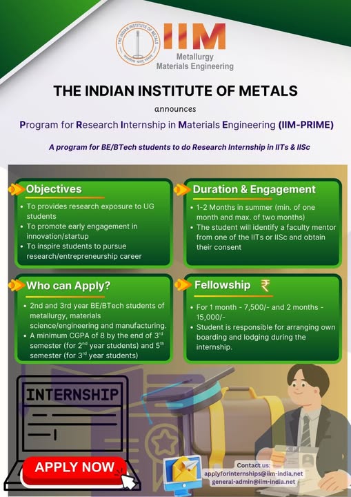 With this intention, IIM is now launching the Undergraduate Internship initiative: IIM-PRIME (Program for Research Internship in Materials Engineering) to provide research/entrepreneurship exposure and mentorship to aspiring students.
